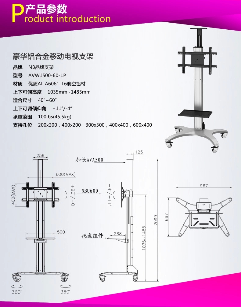 豪华铝合金电视移动支架