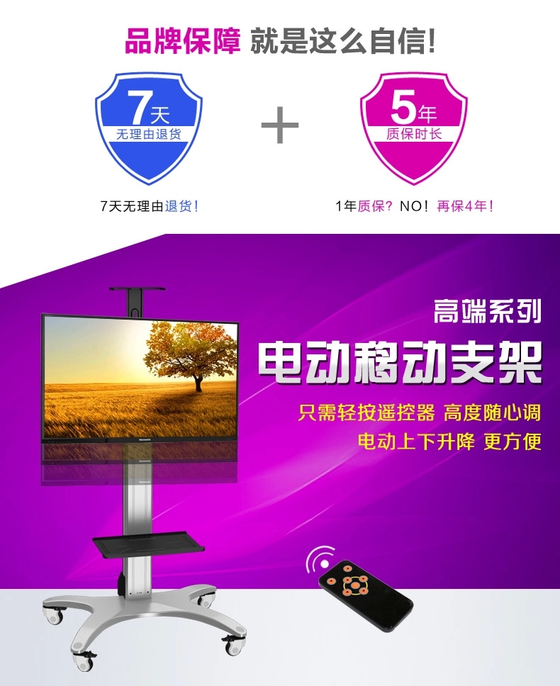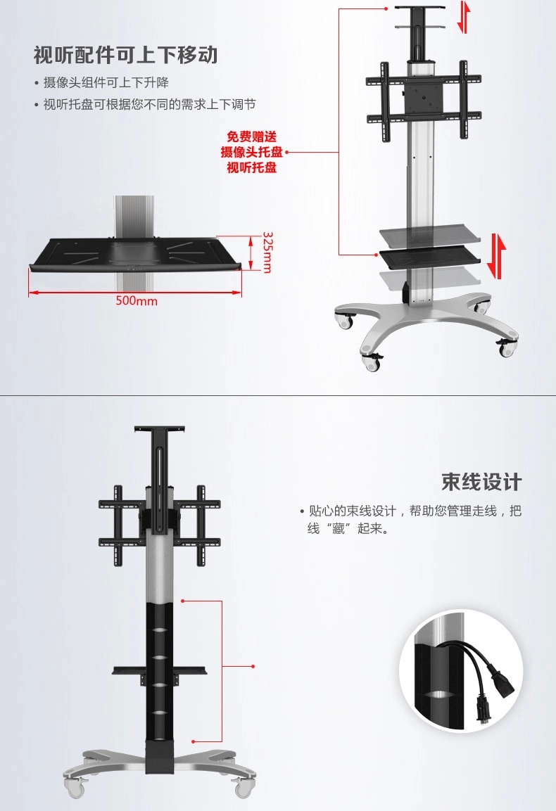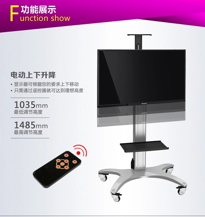 浏览次数:243遥控电动升降可移动电视机推车 |