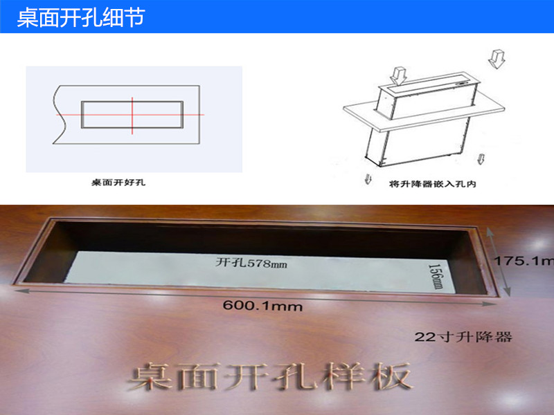 1.先量好升降器机身的正确尺寸,再选定台面的安装位置,